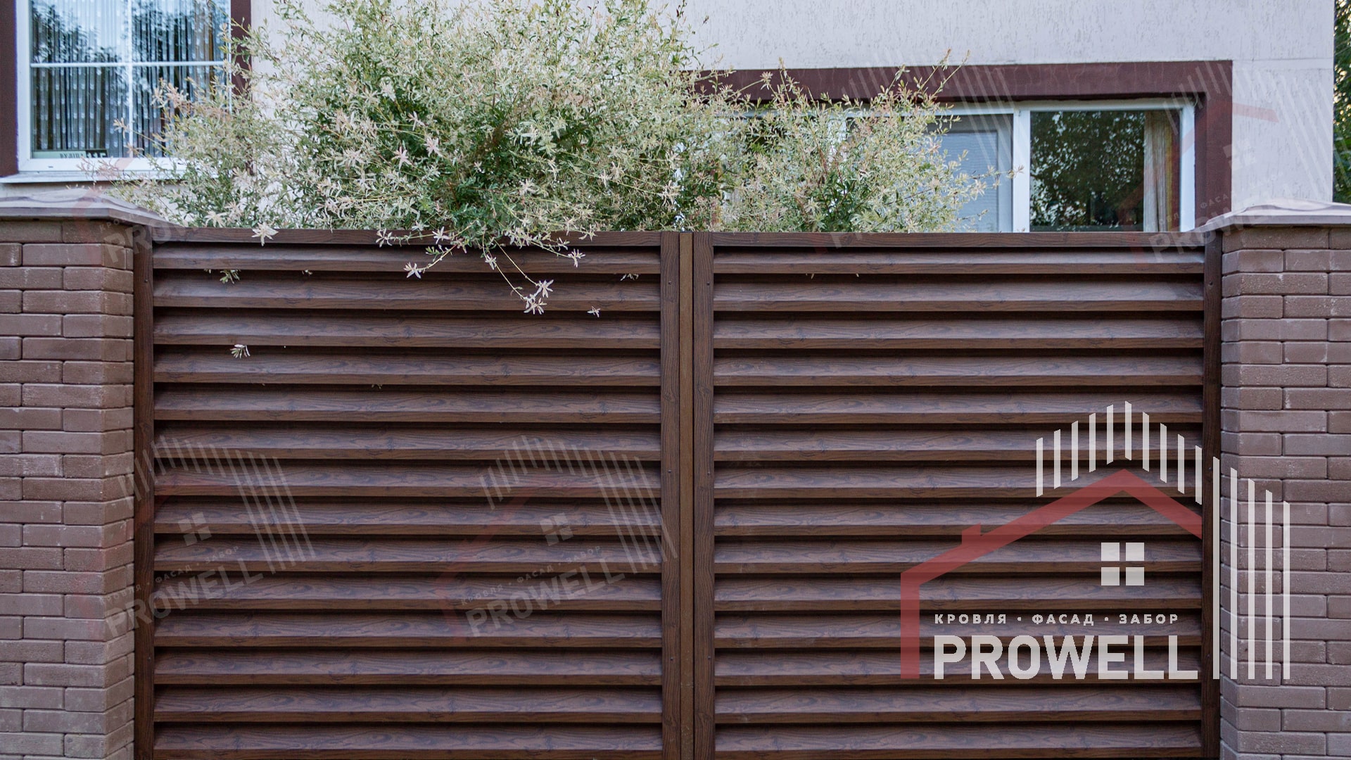 Забор из ЛЕГО КИРПИЧА, Жалюзей ДЕРЕВО ТЕМНОЕ + калитка