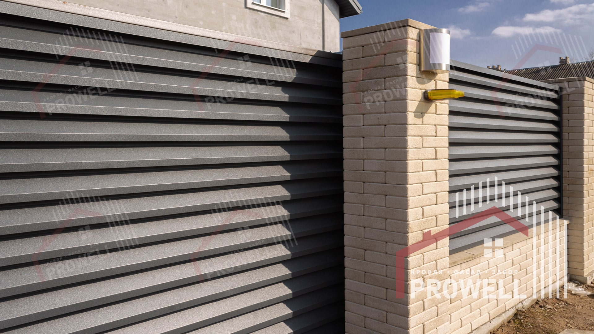 Используемые материалы: Заборы-жалюзи Классик (Classic), Калитка СТАЛЬНАЯ, Ворота откатные СТАЛЬНЫЕ, Кирпич ЛЕГО
