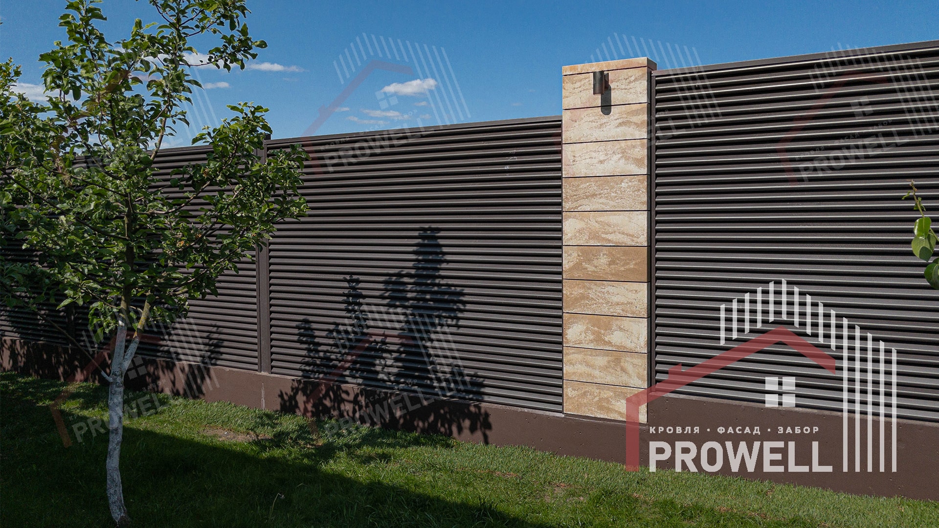 Используемые материалы: Заборы-жалюзи Твинго (TWINGO), Joniec Roma Horizon, FaBrick